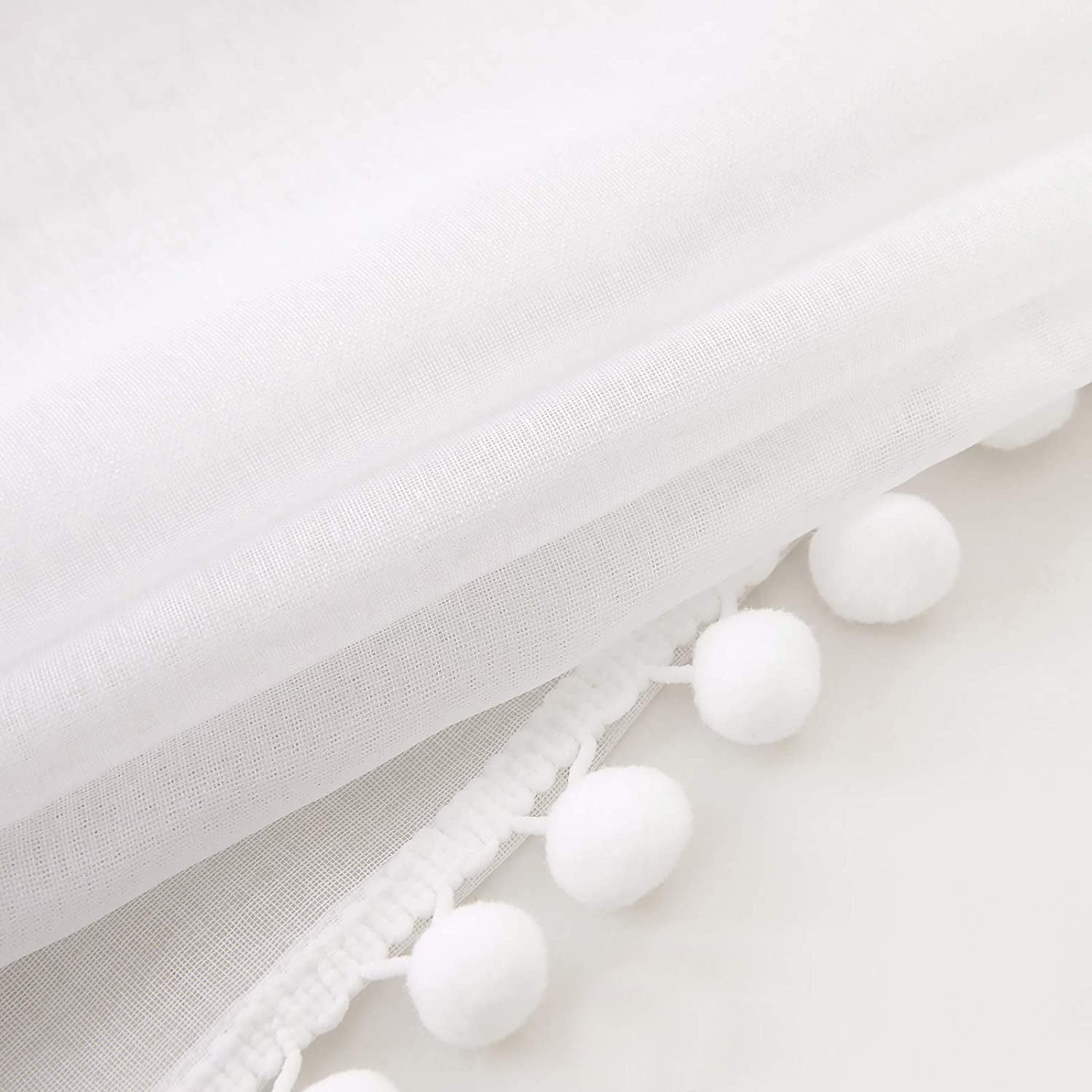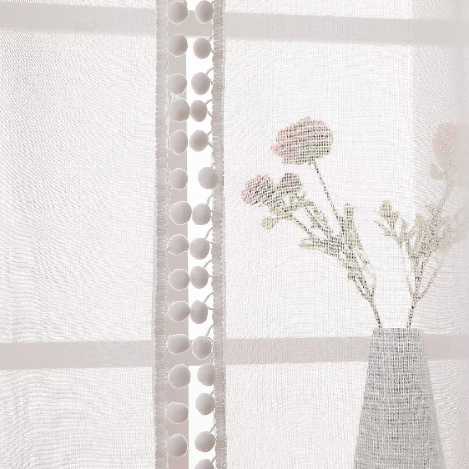 This elegant voile curtain with decorative pompoms adds a playful yet modern touch to your home. The delicate, semi-transparent fabric gently filters daylight, creating a bright and welcoming atmosphere while offering a pleasant degree of privacy.