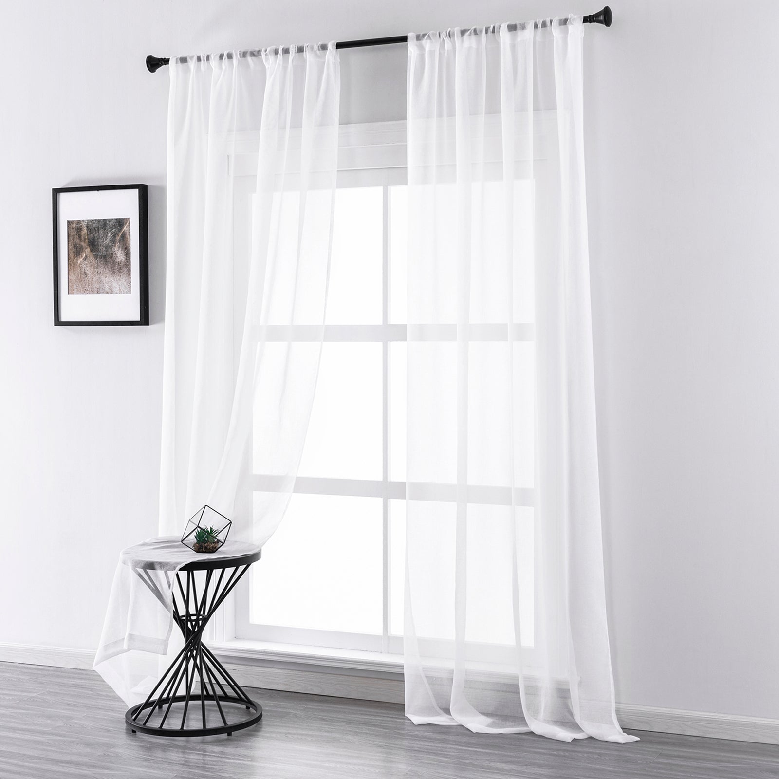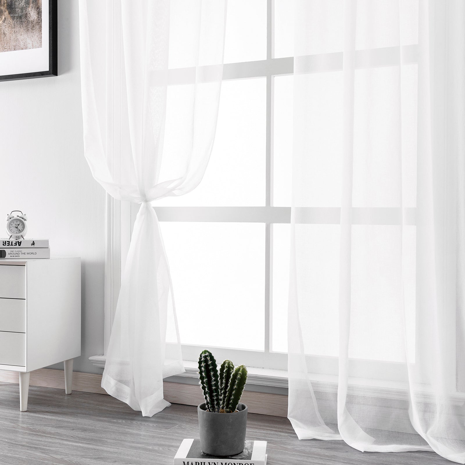 These lightweight white curtains, available in a set of two, bring brightness and elegance to any room. The delicate voile fabric gently lets in daylight, creating a friendly, airy atmosphere while offering a pleasant level of privacy.
