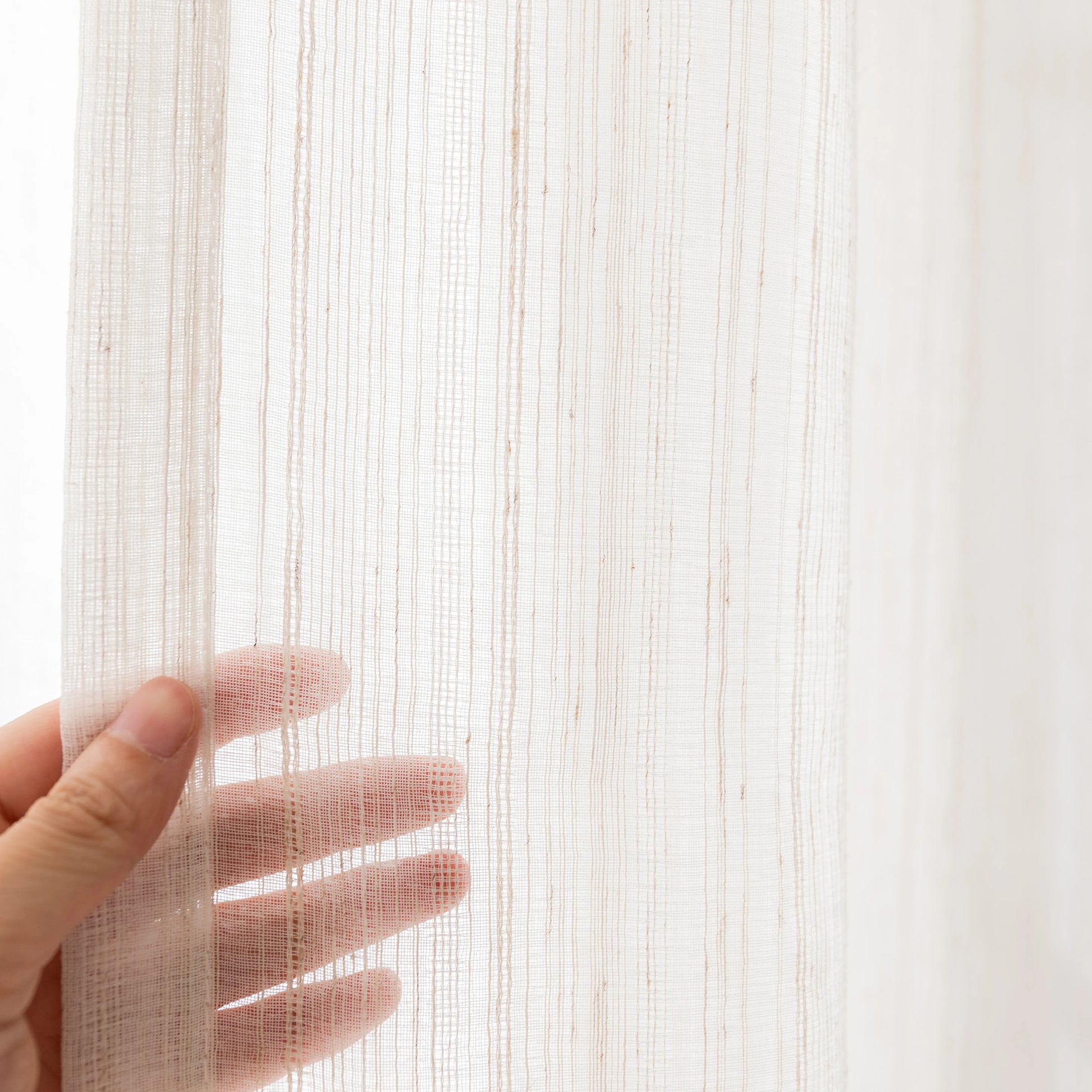 Ce voile léger séduit par sa texture de lin finement tissée et son toucher agréablement doux. Son tissage légèrement irrégulier lui confère un aspect naturel et crée une atmosphère calme et accueillante, idéale pour les pièces où l'on souhaite mettre en valeur la lumière naturelle.