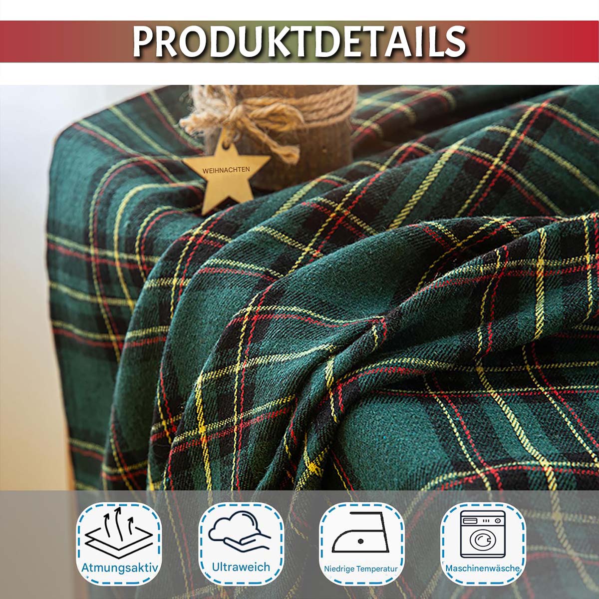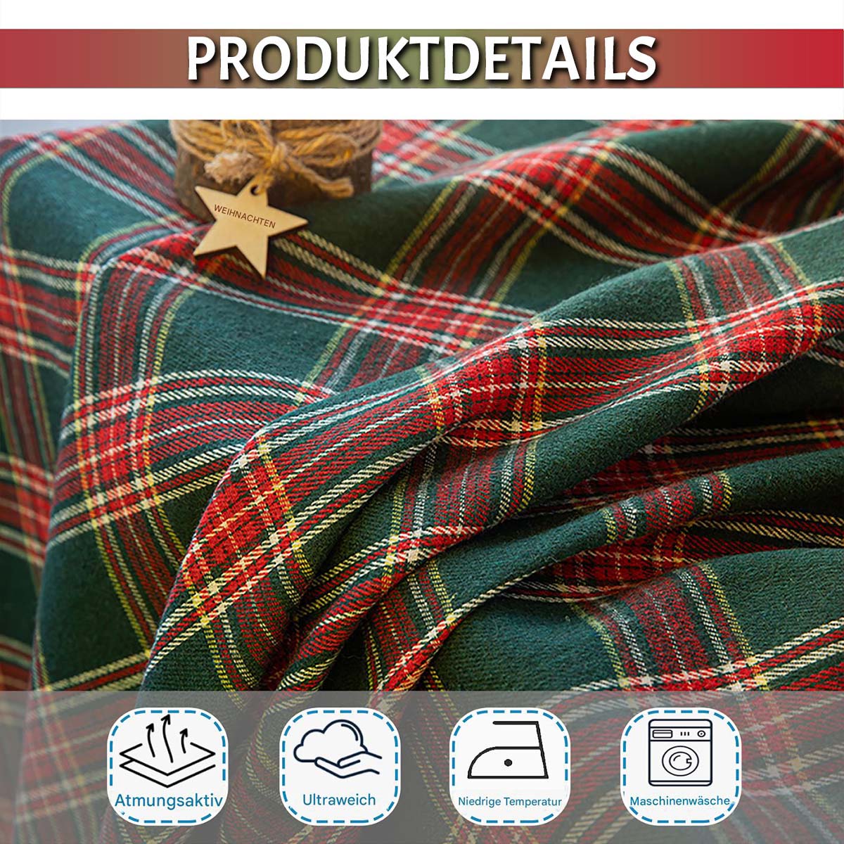- Motif à carreaux vintage rouge et vert – idéal pour les décorations de Noël et d'hiver