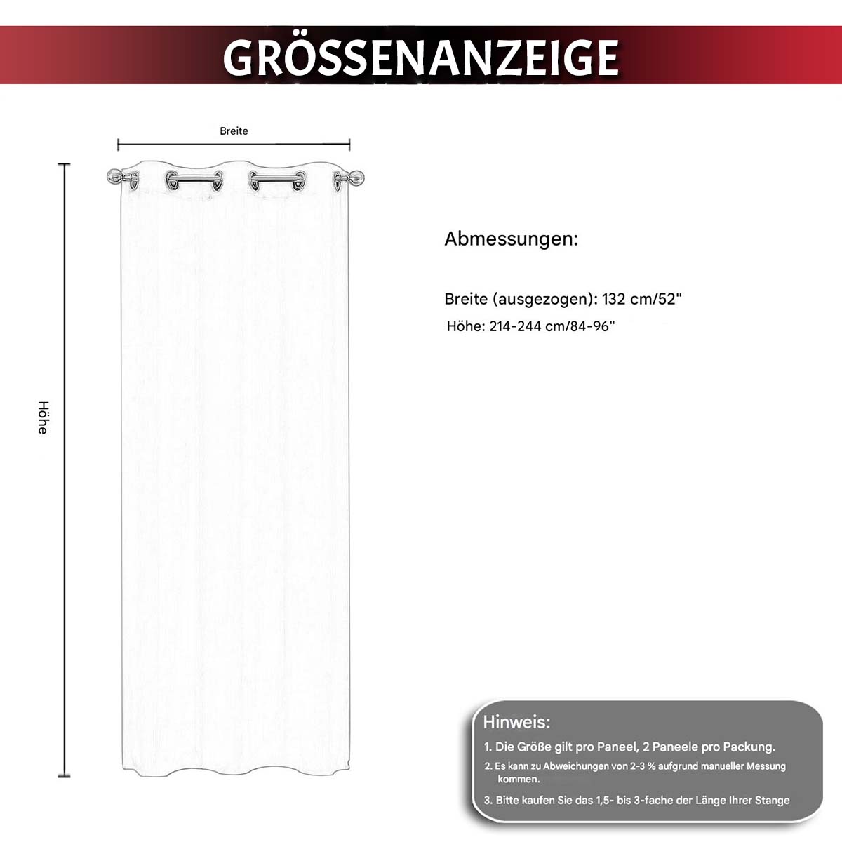• Dimensions Largeur × Hauteur : 132 × 214 cm ; 132 × 244 cm