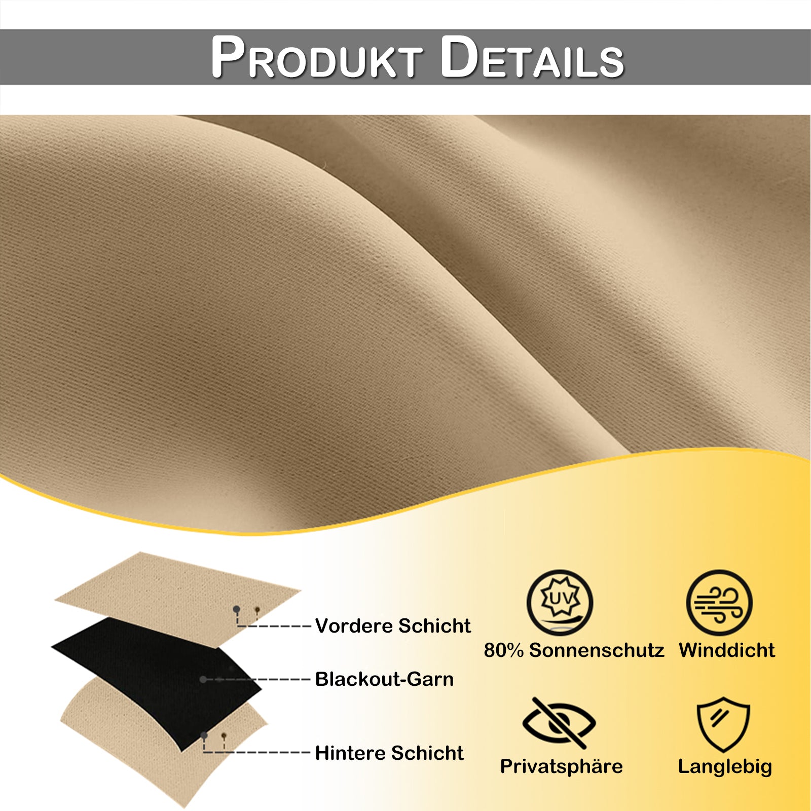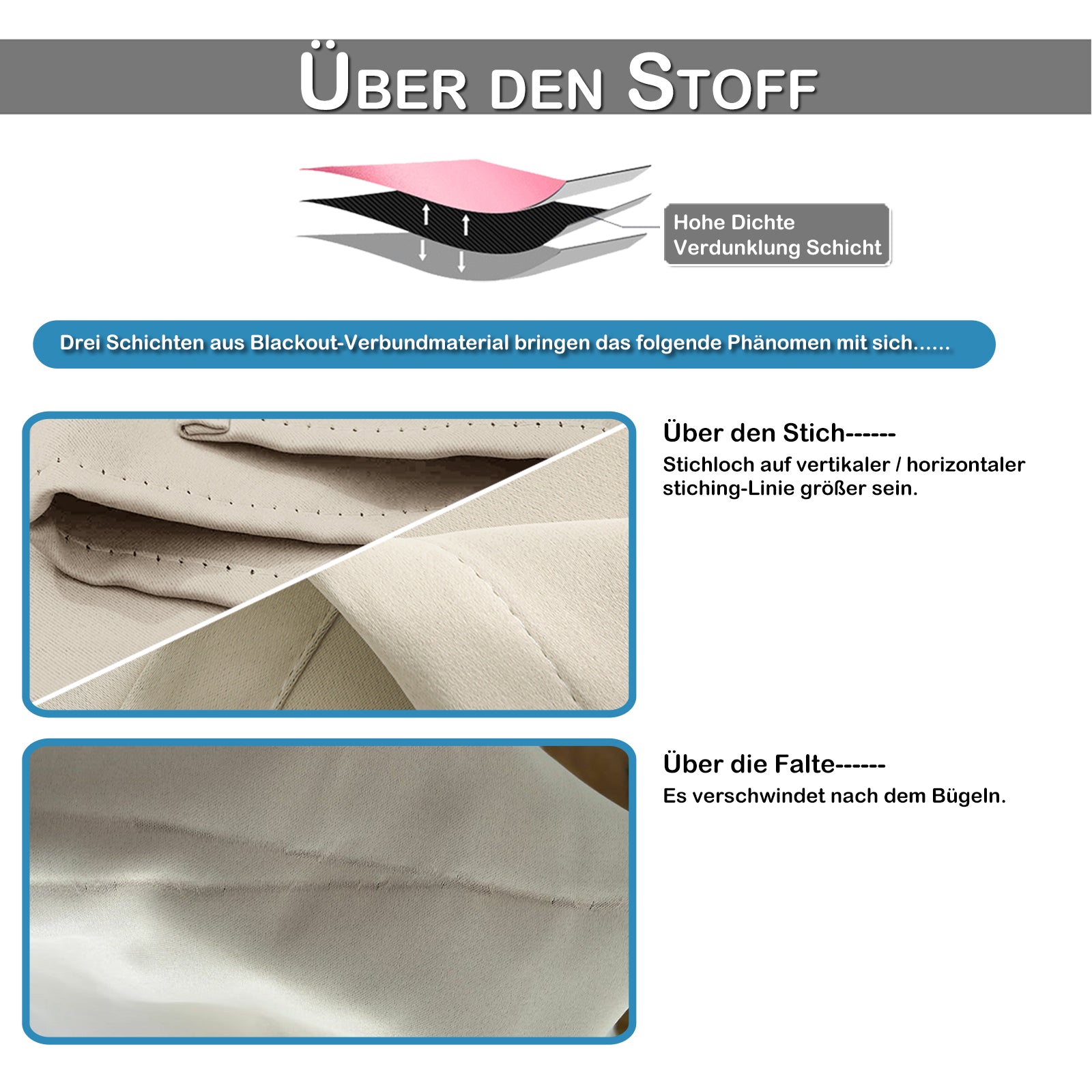 Bei maximal 30 Grad im Waeschesack waschen and an der Luft trocknen. Keine Bleiche oder hohe Hitze verwenden, um Beschichtung und Verdunkelung zu erhalten。