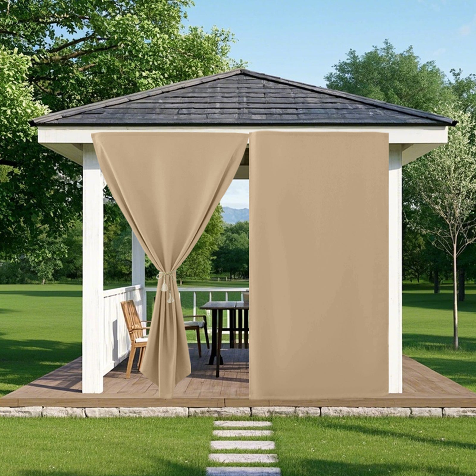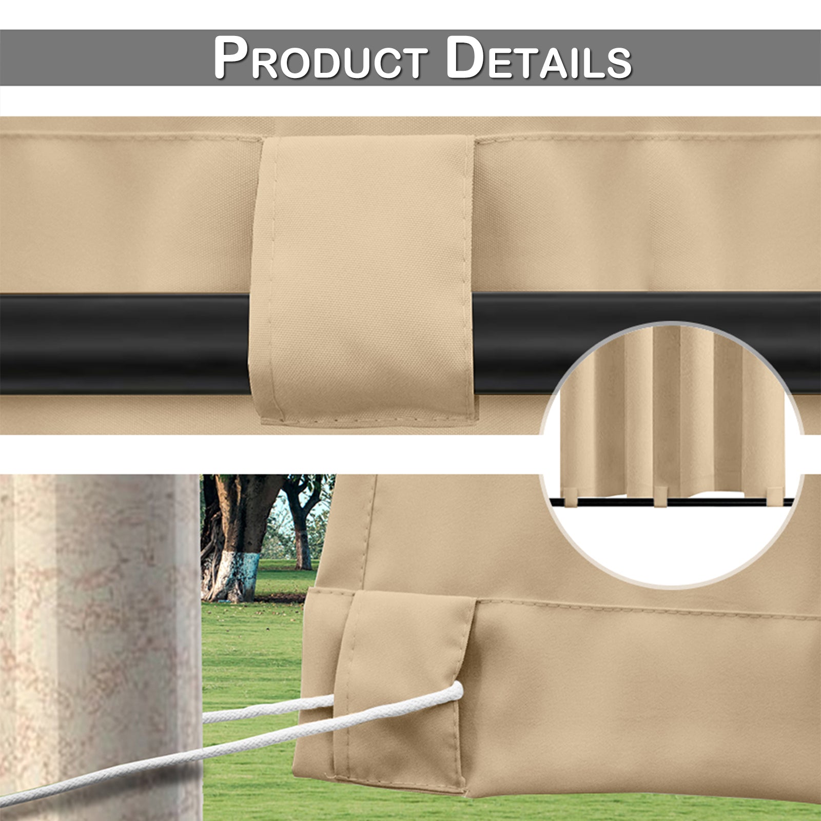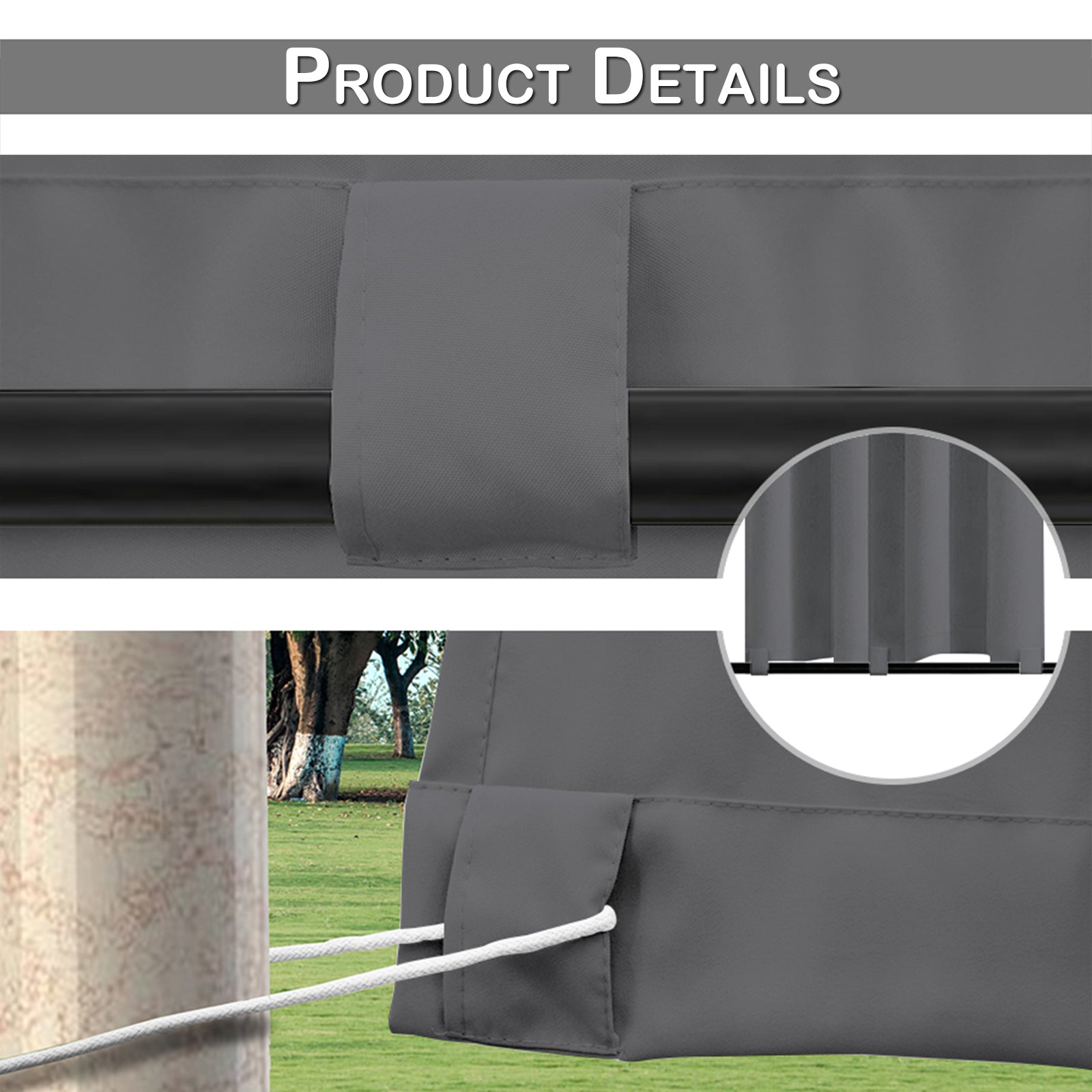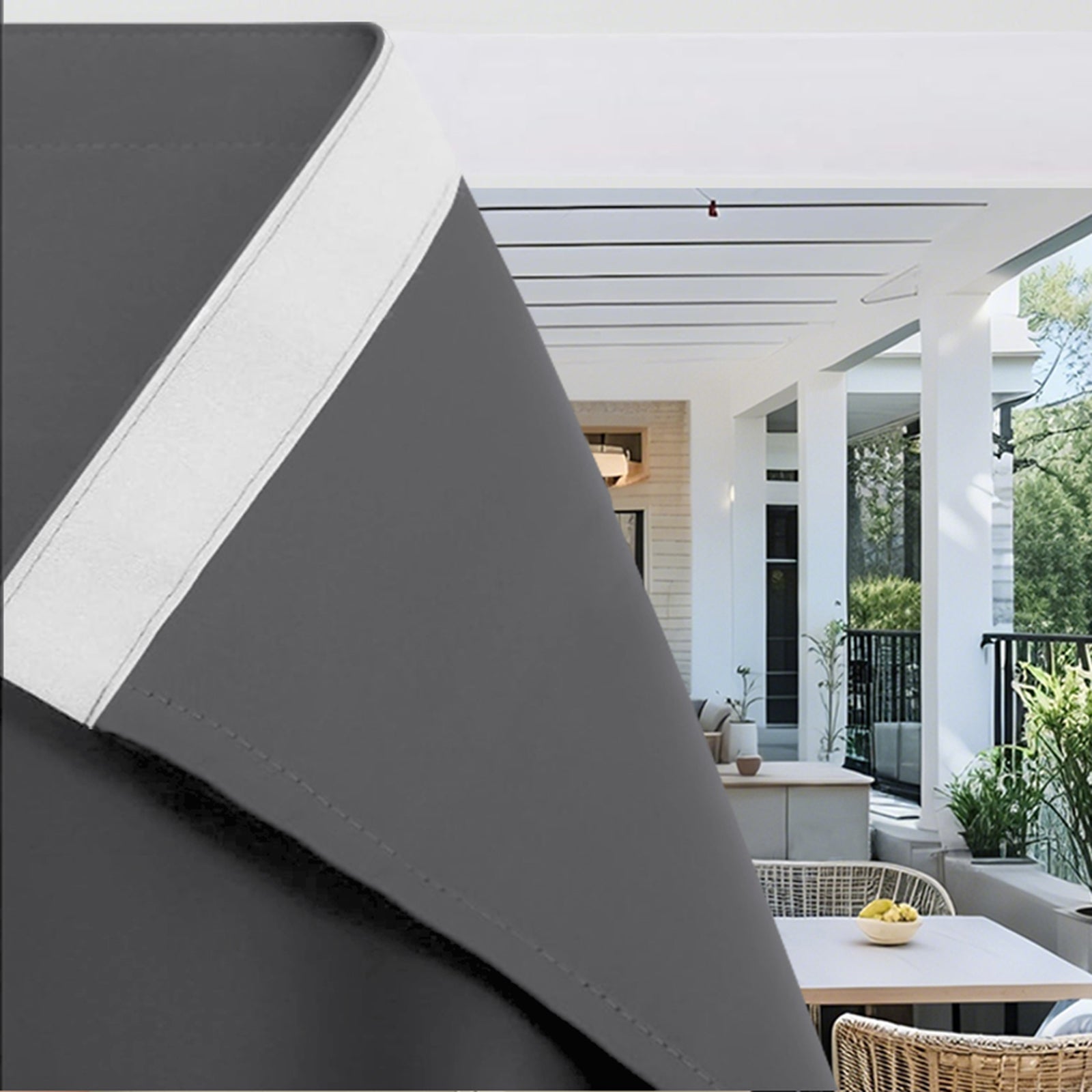 Winddichte und Wasserabweisende Verdunkelungs Vorhang für Terrasse und Garten – Magic Tape Befestigung