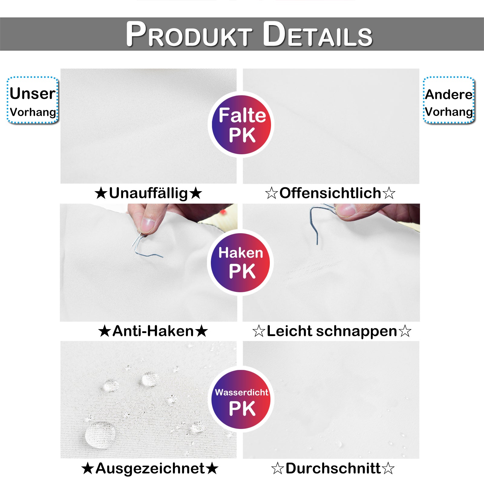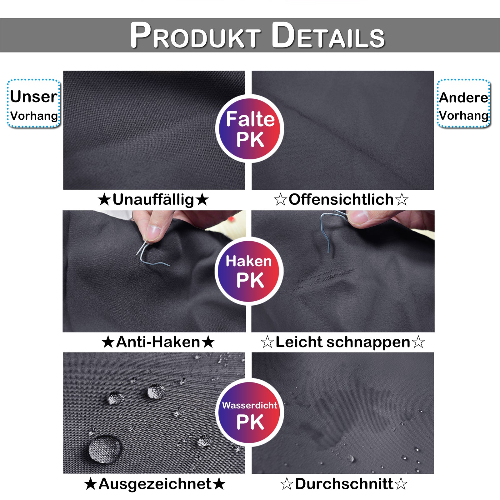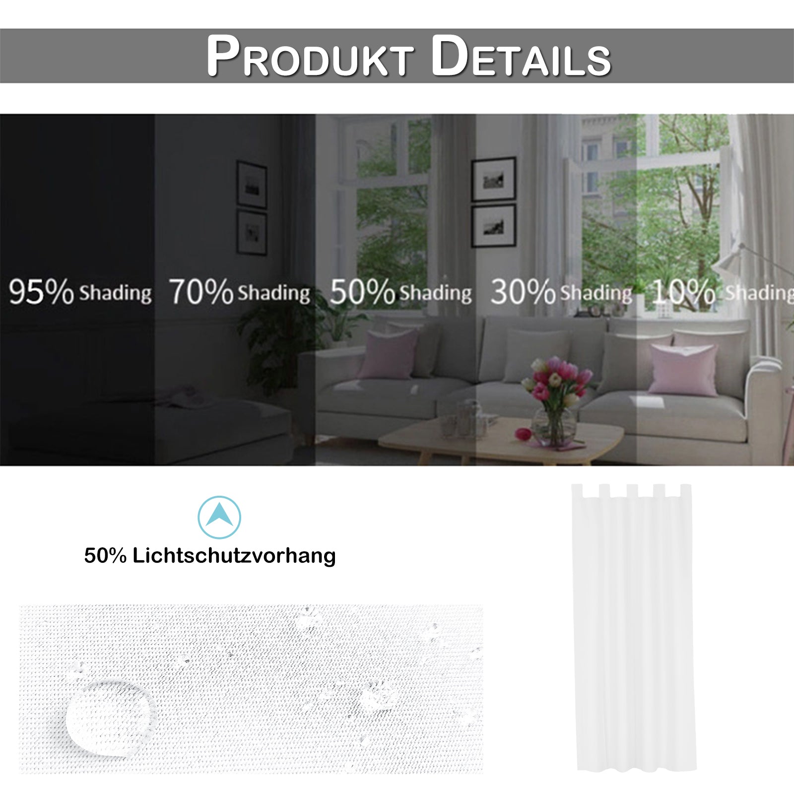 - Tab Top Aufhaengung und verstaerkte Rod Pocket Unterkante fuer stabilen Halt