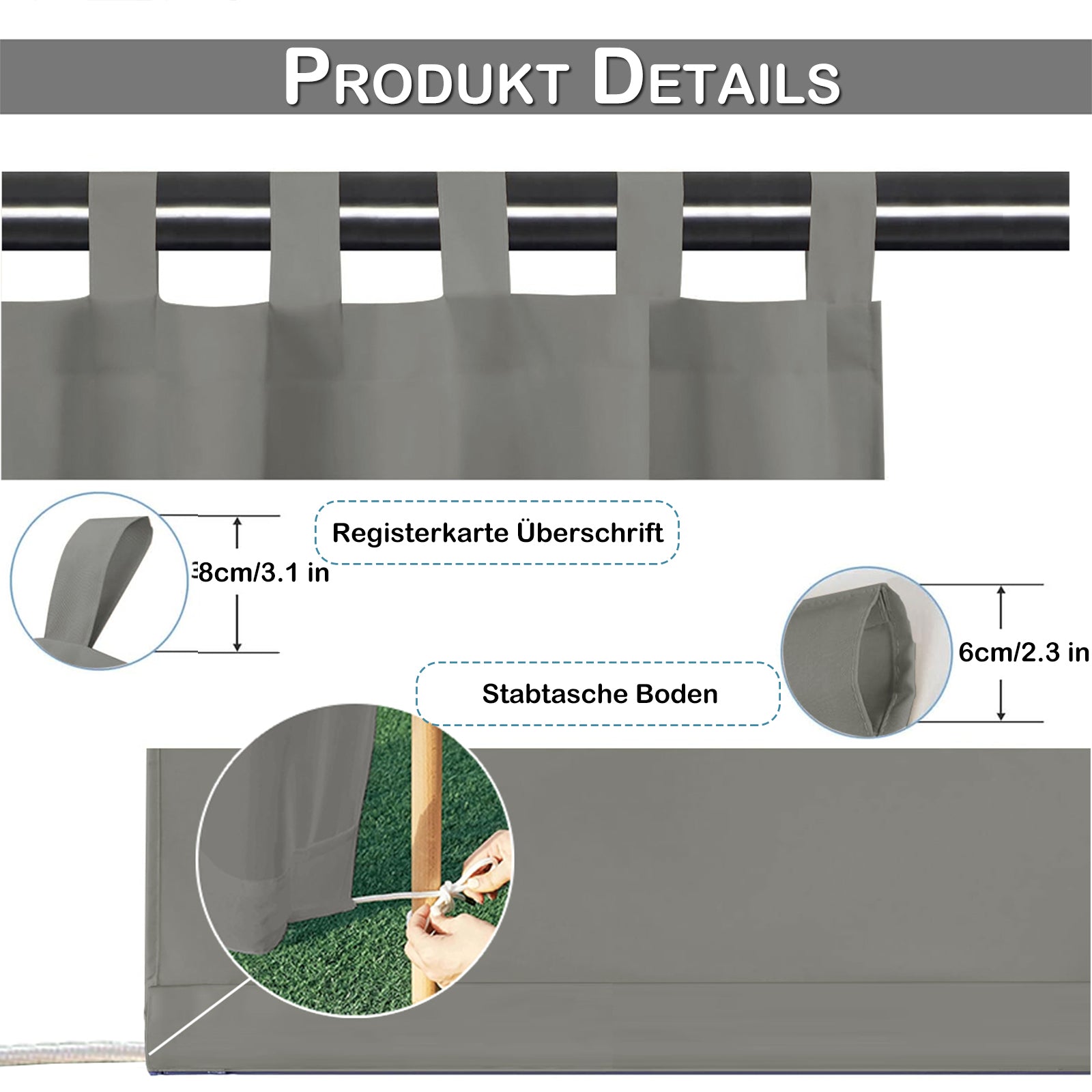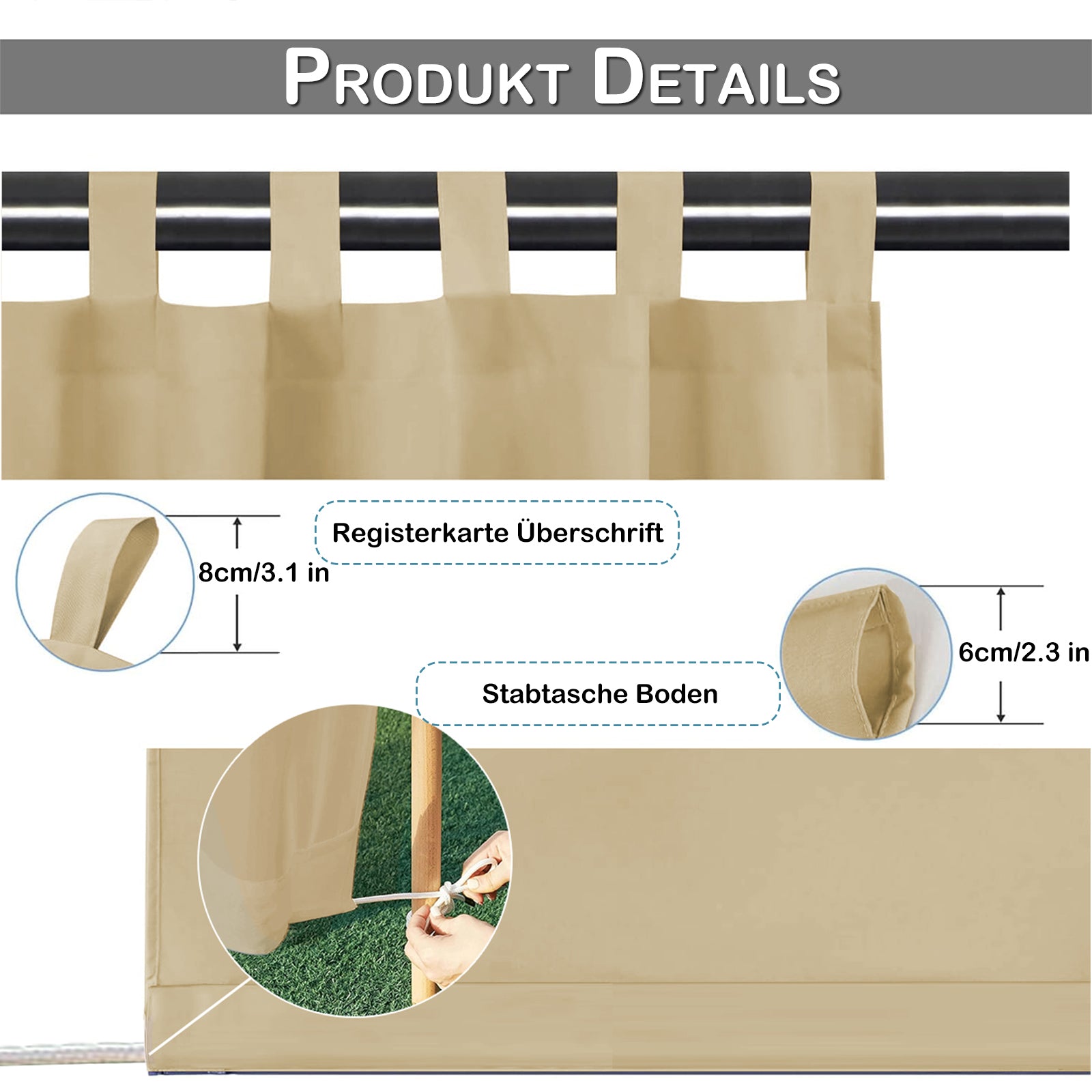 Dieser Outdoor Vorhang ist ideal fuer Terrasse, Garten und Balkon. Das robuste Oxford Gewebe ist wasserabweisend und windstabil, wodurch der Vorhang auch bei wechselhaftem Wetter angenehm in Form bleibt.